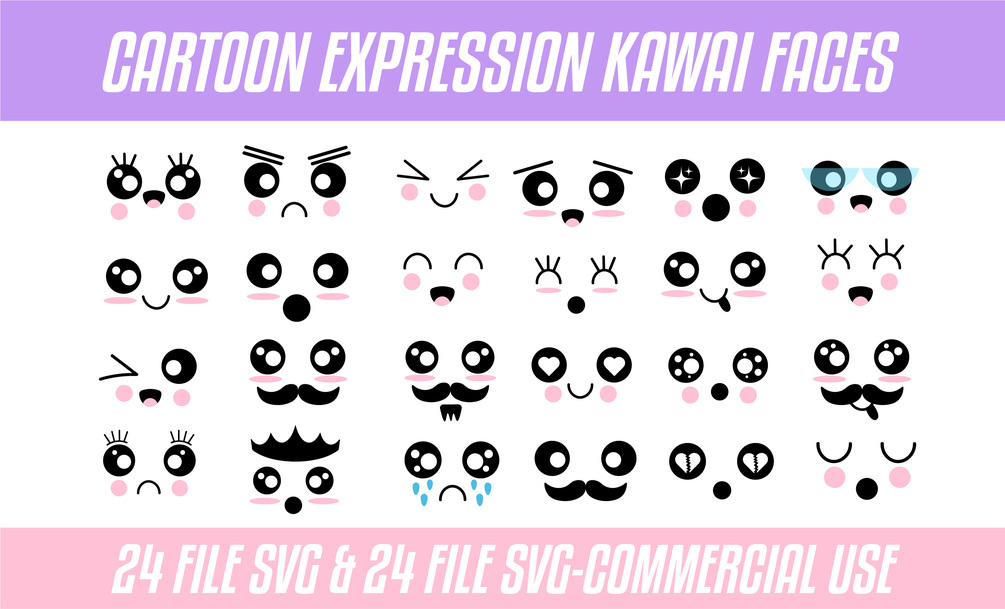 Kawaii Faces SVG Bundle, Cute Face Clipart, Cartoon Emoji Face svg Faces Digital, Anime Faces, Sticker Art, Commercial Use Download PNG,SVG